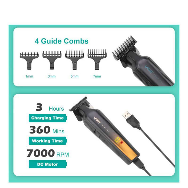 ماشین اصلاح موی حرفهای VGR V-930 ابزاری بینظیر برای اصلاح موی پسران و مردان است. این دستگاه در رنگهای آبی، طلایی و قرمز شیک موجود است و دارای تیغهای از جنس استیل ضد زنگ با روکش تیتانیوم، صفحه نمایش LED و باتری لیتیومی قدرتمند 2000 میلیآمپر ساعتی است که پس از 3 ساعت شارژ، 360 دقیقه کار میکند. این دستگاه با 4 شانه راهنما (1/3/5/7 میلیمتر)، قابلیت شارژ از طریق USB و طراحی سیمی/بیسیم، اصلاحی دقیق و همهکاره را تضمین میکند. سبک و بادوام است و با یک کیت لوازم جانبی کامل برای نگهداری و راحتی ارائه میشود. V-930 که مورد اعتماد متخصصان است، کارایی، سبکی و کیفیت را برای نیازهای اصلاحی شما ترکیب میکند. طول برش مورد نظر خود را با شانه راهنما انتخاب کنید، ماشین اصلاح را روشن کنید و سرعت (معمولی یا توربو) را تنظیم کنید، در صورت نیاز با نگه داشتن دکمه به مدت 2 ثانیه، چراغ LED را فعال کنید و پس از استفاده، تیغه را با برس و روغن روان کننده تمیز کنید. ماشین اصلاح موی حرفهای VGR V-930 یک ابزار اصلاح چندمنظوره است که برای دقت و راحتی طراحی شده و آن را به انتخابی ایدهآل برای پسران و مردان تبدیل میکند. این ماشین اصلاح با داشتن تیغههای سرامیکی با روکش تیتانیوم، باتری لیتیومی قدرتمند 2000 میلیآمپرساعتی و زمان کارکرد چشمگیر 360 دقیقهای با 3 ساعت شارژ کامل، هر بار اصلاحی روان و دقیق را تضمین میکند. طراحی شیک و ارگونومیک آن از هر دو حالت سیمی و بیسیم پشتیبانی میکند، در حالی که صفحه نمایش LED بهروزرسانیهای لحظهای در مورد وضعیت باتری، نشانگرهای روغن و هشدارهای شارژ را ارائه میدهد.