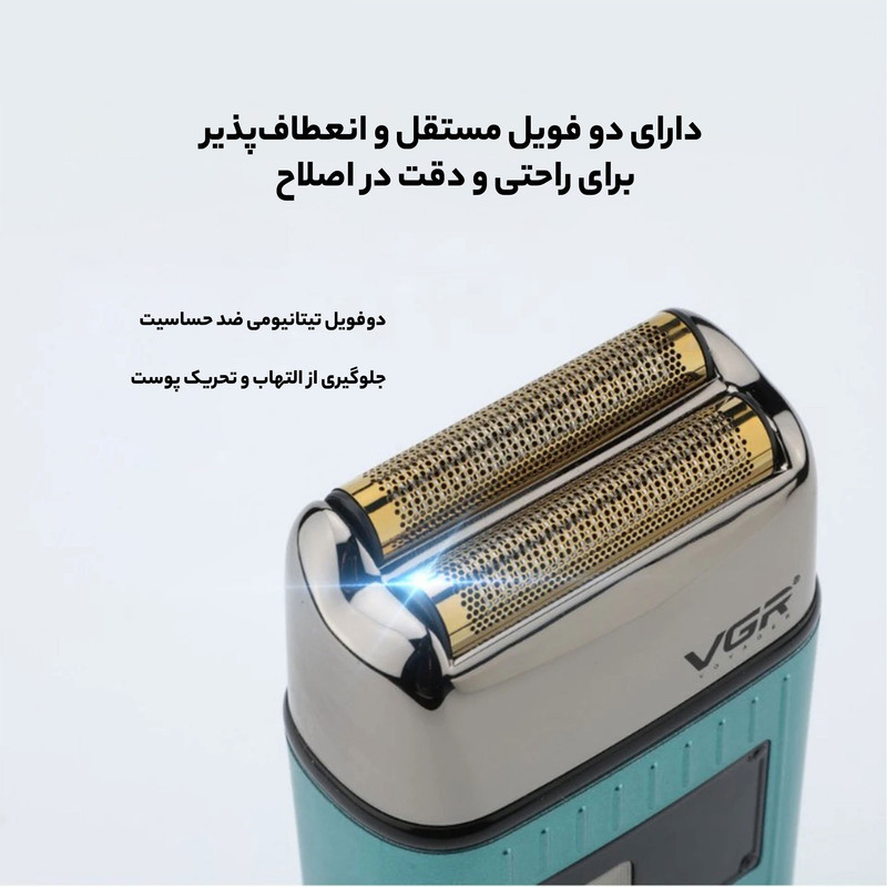 ماشین اصلاح موی سر و صورت وی جی ار مدل V-357 دارای ویژگیهای منحصر به فردی است که از آن استفادهکنندگان بهره بسیاری خواهند برد. این ماشین اصلاح با قابلیت ضد آب، میتواند تحت دوش و حتی در معرض آب استفاده شود. این ویژگی به شما امکان میدهد تا به راحتی و در هر مکان و زمانی که بخواهید، موهای خود را اصلاح کنید. بدون نگرانی از آب و رطوبت، میتوانید به آرامی و با اطمینان کامل از ماشین اصلاح استفاده کنید. فویلی بودن این ماشین اصلاح مو، به شما امکان میدهد تا به خوبی و با دقت بالا، موهای خود را اصلاح کنید. فویلهای کیفیت بالا در این ماشین اصلاح به شما تضمین میکنند که موهای ناخواسته و زائد بهطور کامل و بدون درد و خارش از بین برود. با استفاده از فویلهای تنظیمشدهبهینه، میتوانید به راحتی و به شکلی دقیق موهای خود را به طول و شکل مورد نظر اصلاح کنید. تیتانیوم پیشرفته یکی دیگر از ویژگیهای برجسته این ماشین اصلاح موی سر و صورت است. استفاده از تیتانیوم در ساختار این ماشین اصلاح، قابلیت برش بالا و عمر طولانی را برای شما به ارمغان میآورد. تیتانیوم با دقت بالا، موهای شما را بهطور سریع و بدون نیاز به تلاش زیاد اصلاح میکند. همچنین، این ویژگی به شما امکان میدهد تا برای مدت طولانی از این ماشین اصلاح استفاده کنید، بدون اینکه نگران خرابی و کاهش کارایی آن باشید.