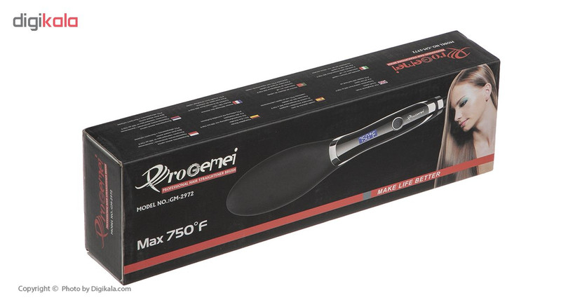 برس حرارتی ProGemei مدل GM-2972 در حقیقت مدل پیشرفته GM-2950 است. بیشینهٔ دما در این برس حرارتی تا 750 درجه فارنهایت معادل 400 درجه سانتیگراد میرسد که به لطف این حرارت میتوان موهای سر را 5 برابر سریعتر از برسهای حرارتی معمولی صاف کرد و یکی از بهترین برسهای حال حاضر است. یکی از ویژگیهای بارز این برس حرارتی فناوری تولید یون است که کمک میکند موهای سر در حداقل زمان خشک شوند. در ساخت این برس حرارتی از مادهای استفاده شده است که از موهای شما در برابر آسیبهای گرما محافظت میکند. برس حرارتی جیمی مدل GM-2972 دارای یک پوشش پانل سرامیکی است. همچنین این برس حرارتی بهصورت ارگونومیک طراحی شده است بهطوری که دستگاه در دست کاملاً پایدار است. به وسیله ی این برس حرارتی میتوانید موهای صاف و براقی داشته باشید. روی بدنهٔ این برس حرارتی یک نمایشگر LCD قرار داده شده است که شما با استفاده از آن درجه دستگاه را بسته به نوع موی خود تنظیم کنید.